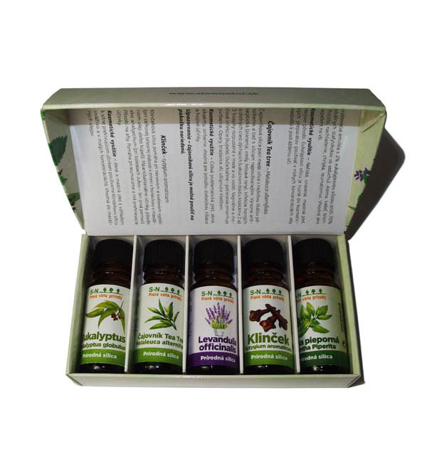| Charakteristika | sada esenciálnych olejov – Prírodná domáca lekárnička je elegantná darčeková sada 5 100% prírodných éterických olejov na podporu zdravia, imunity a psychickej pohody v každej domácnosti. |